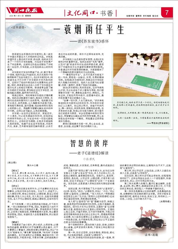 苏东坡的人生态度和哲学思想,也是《苏东坡传》中的重要内容。他所达到的“无我”境界,以及对“道”的追求和对生活的积极态度,都受到了中国传统文化中道家和儒家思想的影响。作者通过对苏东坡思想的解读,为读者提供了一个理解和欣赏中国传统文化的视角。
