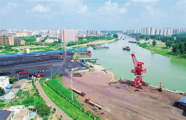 7月2日,繁忙的刘湾港。刘湾港位于沈丘县城东20公里处的刘湾镇,与安徽省界首市毗邻,货物在这里装船后入淮河可“通江达海”,是河南省的“水上门户”,公路、铁路、水运三位一体的联运中转枢纽,豫晋煤炭的出口外销基地。记者 梁照曾 摄