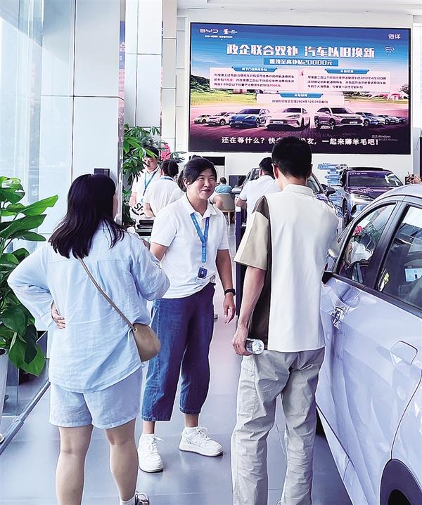 在吉利汽车4S店,店内负责人宗先生告诉记者该店主要销售燃油车,6月份店内以旧换新营业额占店内总营业额约30%。“市里汽车以旧换新政策实施已有一段时间,消费者陆陆续续也都了解了有关信息,大家的咨询热度还在上升。”宗先生说。