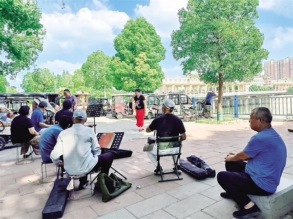 昨日,天气凉爽,新老戏迷聚集在中心城区沙颍河公园,自弹自唱、其乐融融,引得路人驻足观看。近年来,我市注重民生工程建设,现在的沙颍河公园已经成为集生态环保、休闲观光、文化展示、宣传教育于一体,老少皆宜的休闲娱乐绿色长廊。记者 沈湛 摄