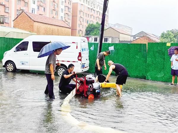 7月15日至16日,鹿邑县遭遇强降雨,县城管部门组织人员携带排水设备,冒雨坚守在城区12个积水点。他们疏通下水道、帮行人推车、抽排积水,坚守初心使命,强化责任担当。