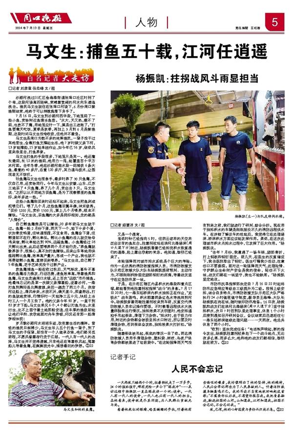 7月16日,马文生到沙颍河西华段,下地笼网了一些小鱼,卖给附近鱼塘当鱼苗。“水大,天又热,撒不了网,也放不了鹰,用地笼应付一下,算是出工进账了。”打鱼要靠天吃饭,夏季是淡季,再加上3月到6月是禁渔期,这段时间马文生没啥收获,但他并不着急。