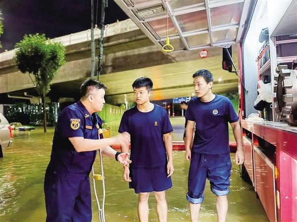 本轮强降雨对城市排水系统是个巨大的考验。作为一名优秀的消防救援指挥人员,市消防救援支队示范区救援大队大队长杨振凯提前预判、主动作为,不顾刚刚拆除固定腿部钢钉的疼痛,带着战友坚守在应急防汛第一线。