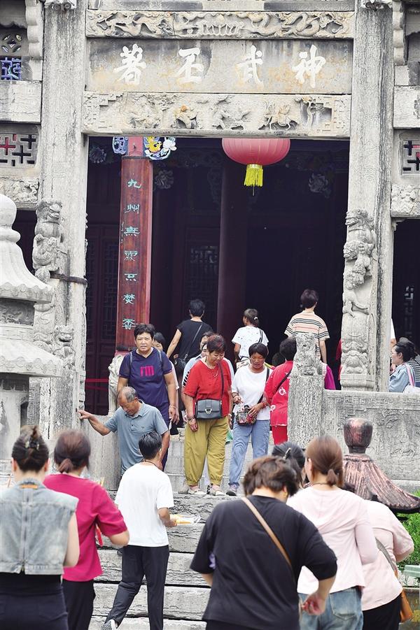 7月20日,游客在关帝庙游玩。我市着力打造关帝庙历史文化街区、南寨历史文化街区,以中心城区漕运文化为主的文旅景区,吸引游客在暑假带着孩子前来游玩。记者 梁照曾 摄