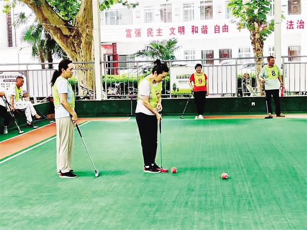 7月23日,参赛队员正在比赛中。为丰富军休干部的精神文化生活,进一步增强军休干部的凝聚力和向心力,当日,周口市军休所举办了庆“八一”门球邀请赛。