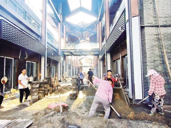 8月7日清晨,几名工人在关帝庙历史街区更新改造项目现场施工。关帝庙历史街区是我市精心打造的文化新地标,随着更新改造项目稳步推进,这里已成为丰富群众文化生活、推动夜间消费、点燃城市烟火气的重要场所,是市民游玩的热门打卡地。记者 沈湛 摄