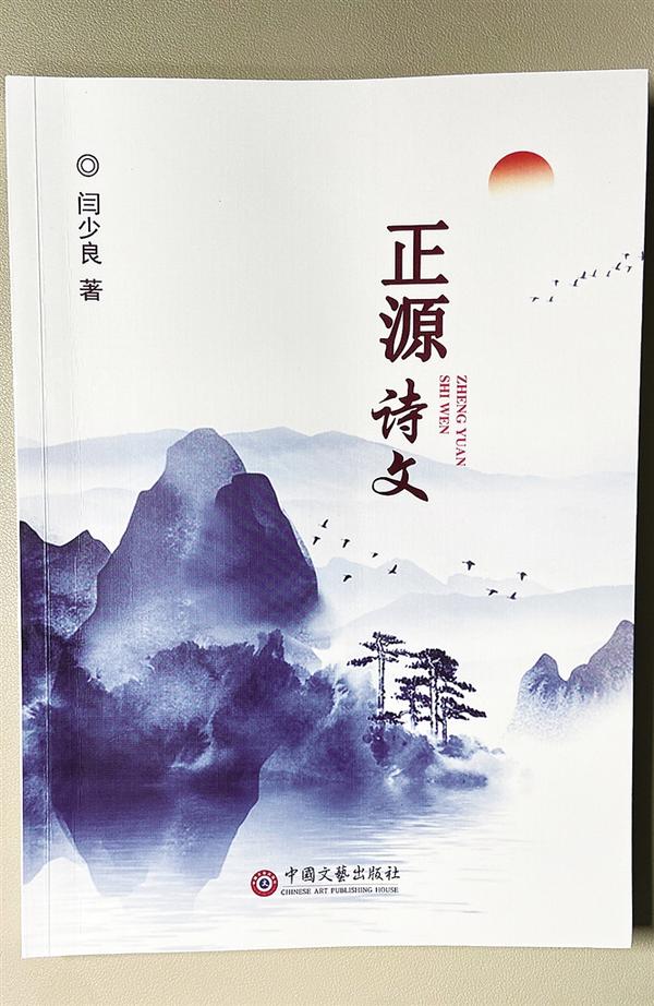 本报讯 近日,由我市退休干部闫少良著作的诗集《正源诗文》出版。该诗集分为“正气雄风”“抗战反战”“史今初探”“江山情怀”“思绪翻澜”“交警序曲”“赠友嘱亲”“人生絮语”“文稿”九章。这本诗集内容丰富,作品有对一代伟人的赞美歌颂,有对革命烈士的深切缅怀,有对个人人生经历的感悟思考,思想深刻,可读性强,处处展现作者的家国情怀。