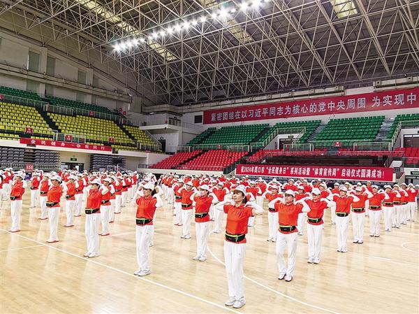 8月8日,体育爱好者在进行集体健步操展演。当日,我市“全民健身日”系列活动暨“体育宣传周”启动仪式在市体育馆举行,800余名体育爱好者进行了广场舞、健步操、击剑展演和柔力球、气排球比赛。记者 刘华志 摄