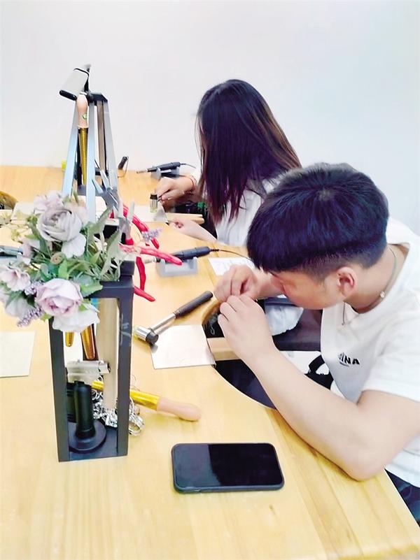 七夕节临近,张盼的店里情侣猛增。作为手工坊的店主,做手工对戒是张盼店里的爆款项目。据她介绍,对戒的原材料均为纯银,款式多种多样。与动辄价格成千上万元的成品戒指不同,这里的部分戒指价格还不到100元(对戒),物美价廉,吸引了很多青年男女。