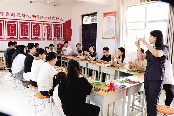 8月8日,志愿者(右一)为群众讲解手工花束的编制方法。为弘扬中华优秀传统文化,培育和践行社会主义核心价值观,引导广大群众树立正确的婚恋观、家庭观、价值观,进一步促进家庭和睦、社会和谐,当日,周口市中级人民法院在郸城县胡集乡新时代文明实践站开展“我们的节日·七夕”主题文化活动。通讯员 赵甜甜 周紧玉 摄
