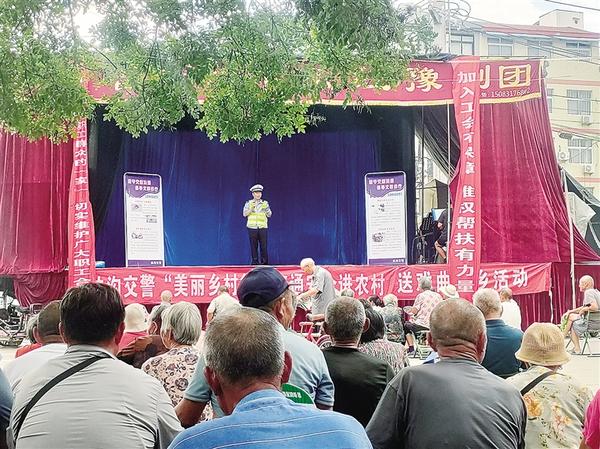 本报讯 为全力营造浓厚的交通安全宣传氛围,持续增强广大群众的交通安全意识,有力预防和减少交通事故的发生,8月9日上午,扶沟县公安局交警大队借助农村大戏台,精心组织开展了丰富多彩的“美丽乡村行”交通安全宣传活动。