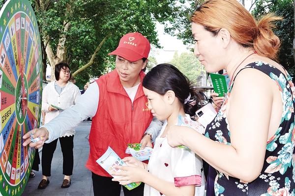 8月14日,市民在转盘有奖竞猜活动中“边玩边学”,对垃圾分类常识有了更多了解。当天,我市环保志愿者以“垃圾分类齐践行,你我同行创文明”为主题,在中心城区五一文化广场开展了一场别开生面的宣传活动,吸引众多市民参与。
