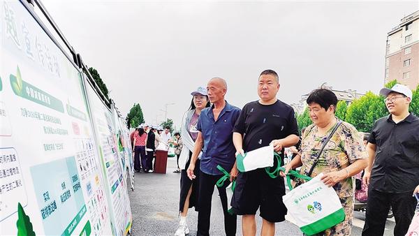 8月15日是第二个全国生态日,今年的主题是“加快经济社会发展,全面绿色转型”。我市各级生态环境部门通过摆放宣传展板、发放生态环境保护知识宣传品等方式同时开展丰富多彩的宣传活动。图为市生态环境局工作人员在中心城区汉阳路开展宣传活动。记者 付永奇 摄