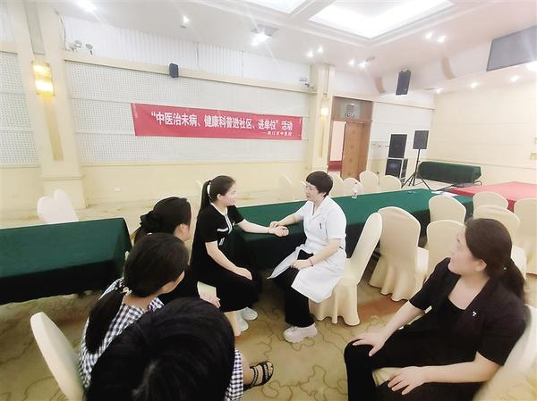本报讯 近日,市中医院治未病科专家团队走进周口饭店,开展“关注女性健康——更年期综合征的健康调理”科普讲座及义诊活动,传播中医药治未病理念。