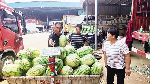 “这车西瓜是从新疆拉回来的,有6万多斤,大概2天至3天能卖完。”近日,在黄淮农产品大市场,西瓜批发商单建厂正指挥人员将西瓜搬运到客户的货车上。