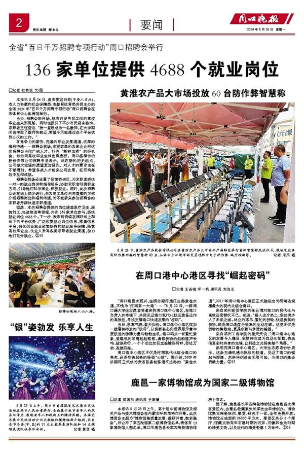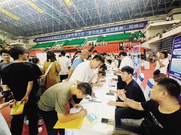 本报讯 8月24日,由市委组织部(市委人才办)、市人力资源和社会保障局、市教育体育局共同主办的全省2024年“百日千万招聘专项行动”周口招聘会在市体育中心体育馆举行。