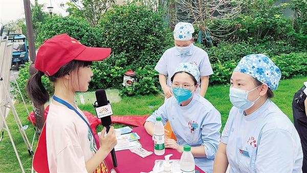 活动现场,一群身披绶带的身影格外引人注目,他们是化身促进口腔健康宣传员的周口报业小记者。只见他们手拿宣传单,热情地向社区居民发放。“叔叔、阿姨,这是关于口腔健康的宣传单,希望您能了解一下,保护好自己的牙齿。”他们稚嫩的话语向居民传递着健康理念。