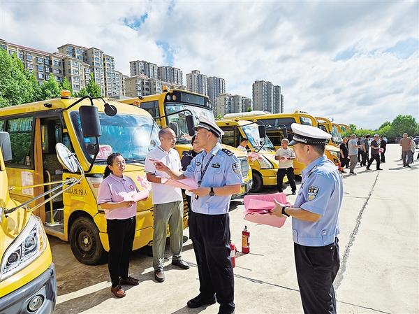 8月27日,市公安局交警支队联合市教育主管部门对周运集团校车有限公司的校车进行安全检查。针对检查中发现的问题,市交警部门提出整改意见,要求校车管理公司在新学期开学前必须将安全隐患彻底消除,确保开学后学生乘车安全。记者 臧秋花 通讯员 赵辉 摄
