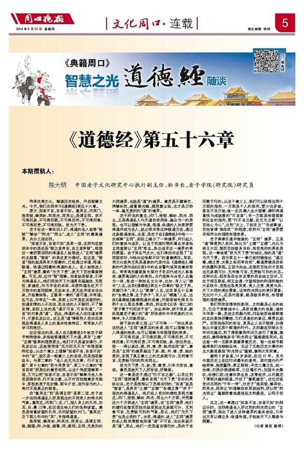 传承优秀文化,解读历史经典,开启智慧之光。今天,我们共同学习《道德经》第五十六章。