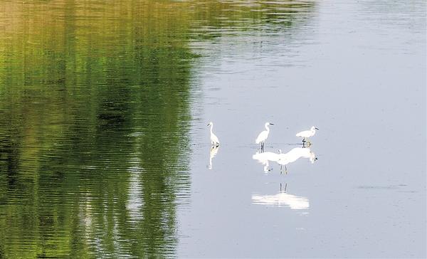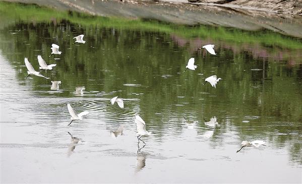 洼冲沟是一条流经周口市中心城区的河流,经过综合治理后,从一条臭水沟变成了风景秀丽的观光河,成为市民休闲赏景的好去处。良好的生态环境,还吸引了众多白鹭在此捕鱼、嬉戏。