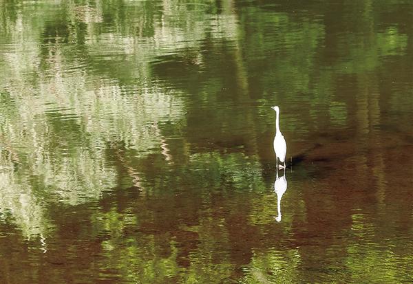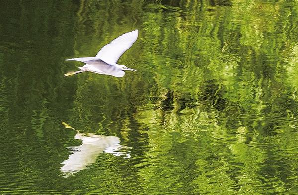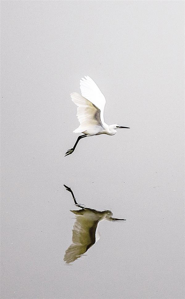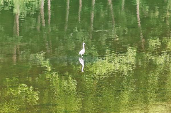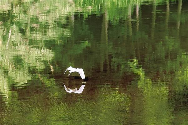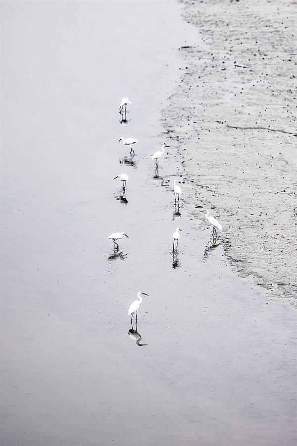 惊起一群白鹭。