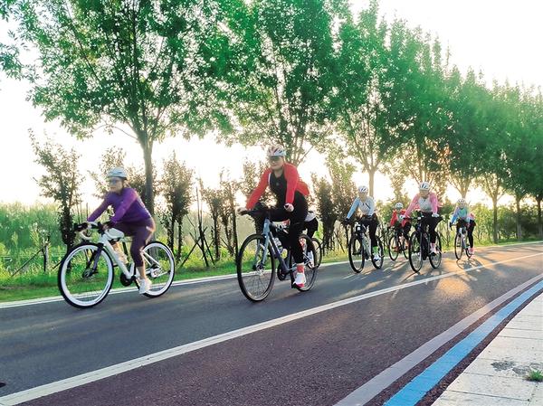 9月1日清晨,在永宁湖湿地公园环湖骑行道上,骑行爱好者三五成群结队锻炼。骑行是一项有益身心的健康运动,越来越受到市民的青睐。 记者 沈湛 摄