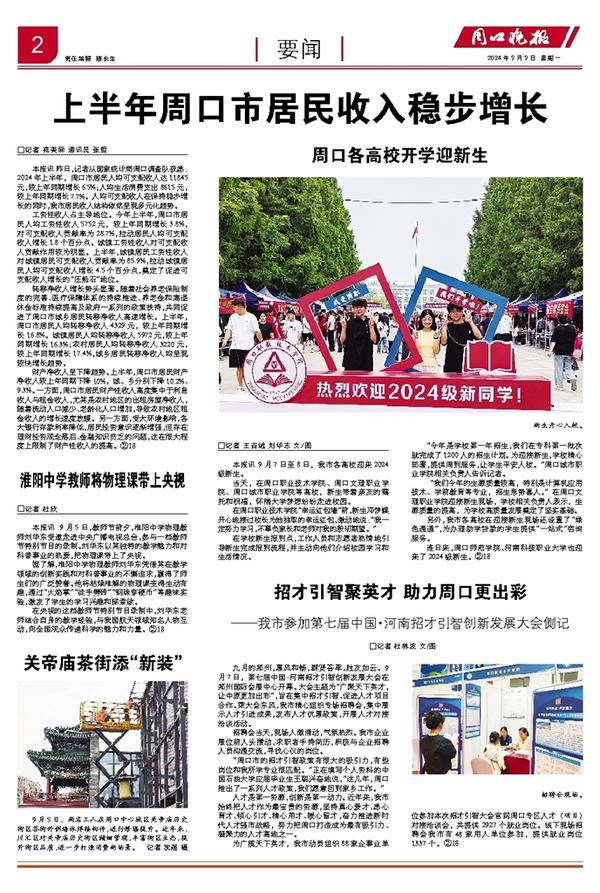本报讯 昨日,记者从国家统计局周口调查队获悉:2024年上半年,周口市居民人均可支配收入达11845元,较上年同期增长6.5%;人均生活消费支出8615元,较上年同期增长7.7%。人均可支配收入在保持稳步增长的同时,我市居民收入结构依然呈现多元化趋势。