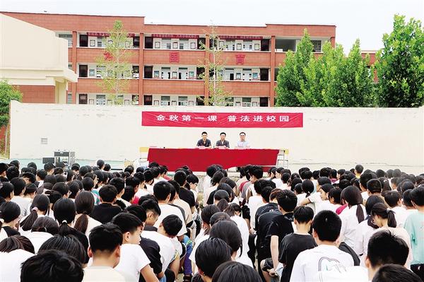 本报讯 为增强学生的安全意识和法治意识,促进学生身心健康成长,9月6日上午,周口市中级人民法院少年案件审判庭法官走进西华县叶埠口乡第一初级中学,开展“金秋第一课 普法进校园”活动。