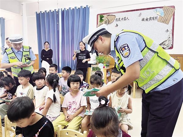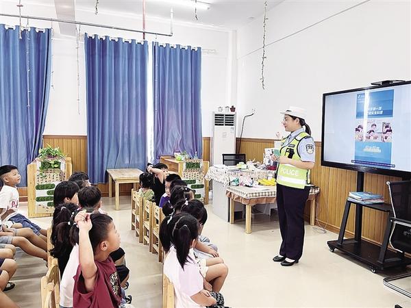 9月3日,扶沟县公安局交警大队交警以“知危险 会避险”为主题,在扶沟县大风车幼儿园开展“开学第一课”交通安全宣讲活动。活动中,交警通过面对面交流、PPT课件演示、发放宣传资料等方式,重点向小朋友讲解外出时不乱跑乱闯、过马路靠右走、走斑马线、看信号灯等交通安全知识。交警还提醒小朋友要自觉遵守交通安全法规,做文明交通的践行者,增强自我安全保护意识。