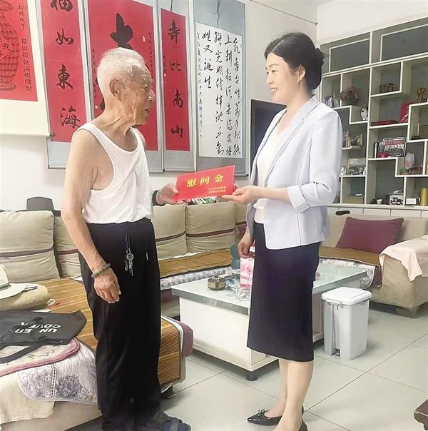 9月9日,沈丘县离退休干部党工委副书记陈莉将慰问金送至老党员手中。当天,沈丘县委老干部局、县离退休干部党工委对老党员及困难党员开展中秋慰问活动,向他们送上节日的祝福和慰问金,让他们切实感受到党和政府的关怀与温暖。 通讯员 张迪 摄