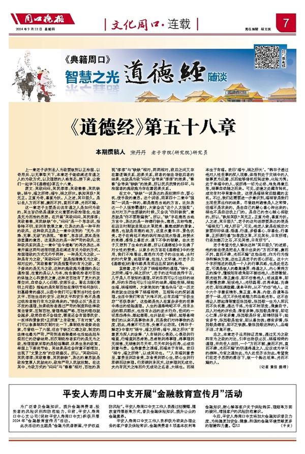 上一章老子讲到圣人为政要做到以正治国、以奇用兵、以无事取天下,本章老子继续阐述有道之人的为政方式,以及理想的人格形态。接下来,让我们一起学习《道德经》第五十八章。