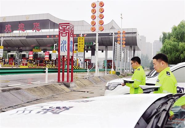 9月18日,随着防空警报声响起,坚守在执勤巡逻、服务群众等岗位上的周口市公安局高速交警向民族英雄致敬,哀悼在抗日战争中遇难的同胞。图为宁洛高速周口南的执勤民警肃立脱帽、低头默哀。