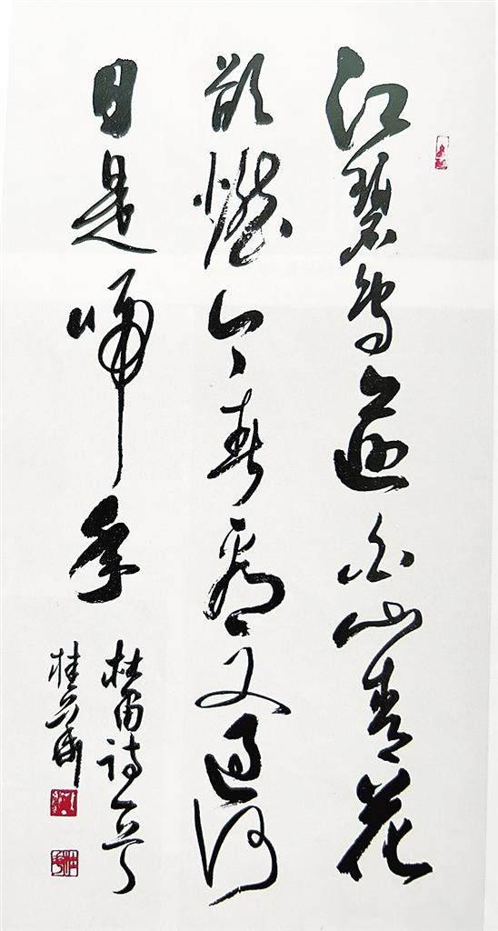 赵桂华的书法字字珠玑,字势豪健,点画飞动,姿态雄奇;或凝重迟涩,或流丽遒劲,痛快淋漓,气韵连贯;纵笔浩放,笔墨酣畅,一泻千里,激情澎湃。其草书,像姿态,行如风、坐如钟、卧如弓、静如山;其小楷,像气质,动静一如、行事从容、落落大方;其魏碑,像声音,单调沉稳、节奏优美、不疾不徐;其隶书,像神韵,举止温和、表情愉悦、眉开眼笑。他善于从书法中挖掘与发现美,让书法中的美点亮其生活的方方面面。