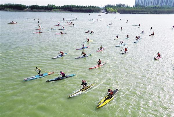 9月16日15时,百名浆板爱好者在我市引黄调蓄湖劈波斩浪,奋力竞渡。当日,由周口市体育总会、周口日报社、周口市城乡一体化示范区主办,周口市桨板运动协会、周口风顺体育有限公司承办的“第一届全省桨板邀请赛暨2024年迎中秋周口市桨板环引黄调蓄湖嘉年华”在风景优美的引黄调蓄湖举行,来自省内100多名桨板运动爱好者参加大众成人男子组、大众成人女子组环湖6公里竞赛和青少年组环湖3公里竞赛。记者 梁照曾 姬慧洋 摄