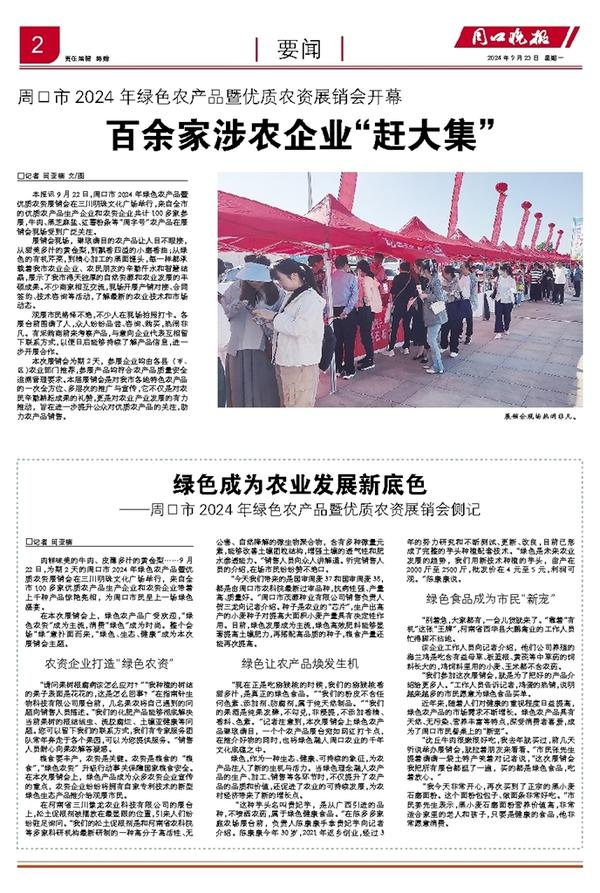 近年来,随着人们对健康的重视程度日益提高,绿色农产品的市场需求不断增长。绿色农产品具有天然、无污染、营养丰富等特点,深受消费者喜爱,成为了周口市民餐桌上的“新宠”。