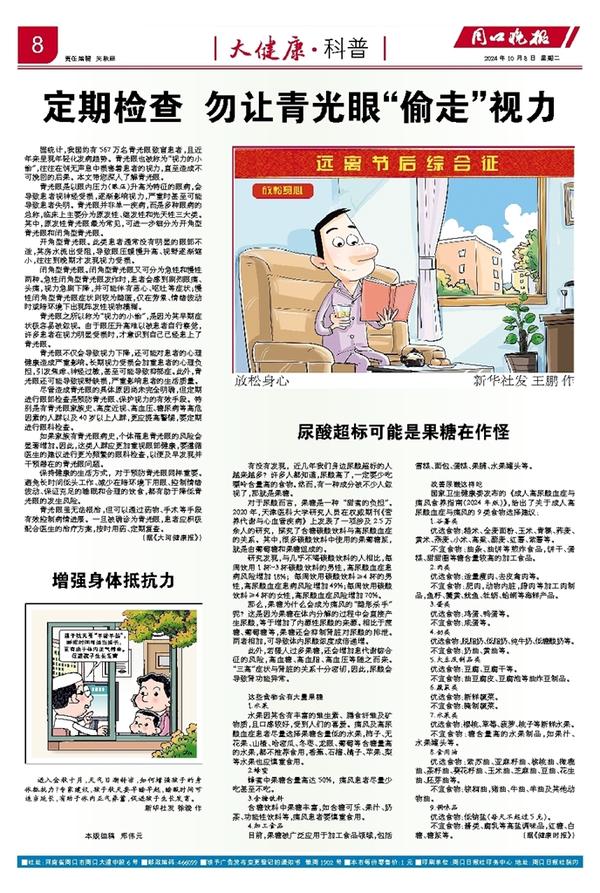 此外,若摄入过多果糖,还会增加患代谢综合征的风险,高血糖、高血脂、高血压等随之而来。“三高”症状与肾脏的关系十分密切,因此,尿酸会导致肾功能异常。