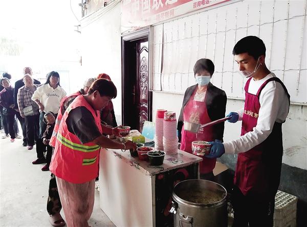 本报讯 10月10日,重阳节前夕,清晨第一缕阳光洒向大地,钱广新已经忙碌起来,在他和厨师的精心准备下,一锅锅热气腾腾、香气四溢的绿豆面条端了出来。钱广新一边热情地招呼老人排队,一边动手盛饭,微笑挂在嘴角,快乐写在脸上。