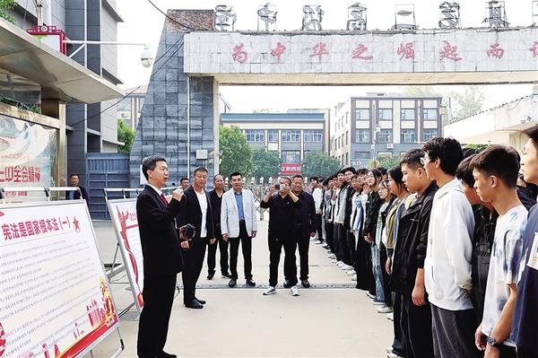 “大家不仅要学习书本知识,更要了解法律知识,做到尊法、学法、守法……”10月12日,鹿邑县人民法院党组书记、院长,鹿邑县第二高级中学法治副校长张述涛带领法院干警,来到鹿邑县第二高级中学,在校园广场上为学生进行普法宣讲,并发放法律读本,鼓励他们在日常生活中积极学习法律知识。