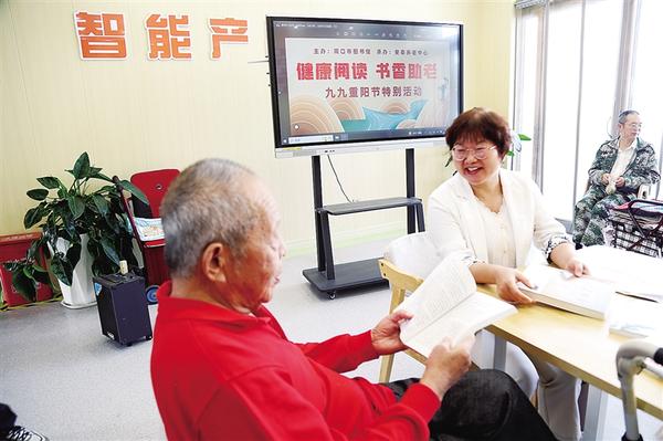 本报讯 为培育尊老敬老、爱老助老的社会风尚,10月11日,重阳节当天,周口市图书馆志愿者走进川汇区荷花路街道综合养老服务中心开展“健康阅读 书香助老”重阳节特别活动,为老人们送上节日祝福。