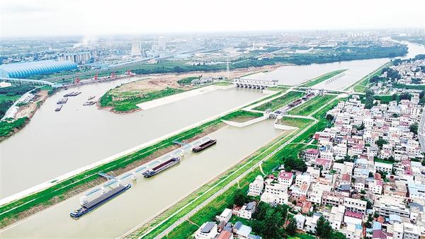 从高空俯瞰,沙颍河如一条玉带,将县城与新建的控导工程、过船闸紧密相连。
