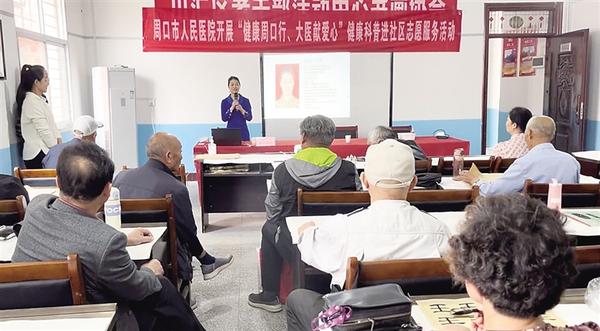 本报讯 10月11日是重阳节,周口市人民医院内分泌科义诊团队走进川汇区老干部活动中心,开展健康科普志愿服务活动,进一步增强老年人的健康生活意识,弘扬中华民族尊老、敬老、爱老的传统美德。