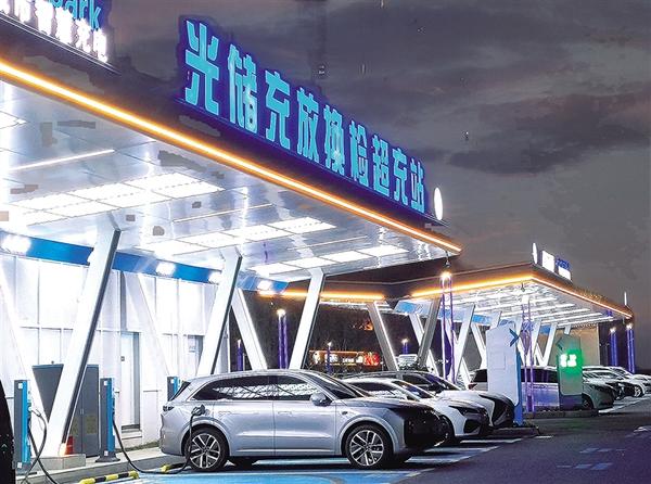 10月14日,夜幕下的中心城区滨河北路光储充放换检超充站内灯火辉煌、车来车往。据了解,该超电站占地面积18亩,拥有近百个充电桩及充电泊位,具有停车、洗车等专区,是目前中心城区规模最大、功能最全的综合性超充站。记者 沈湛 摄