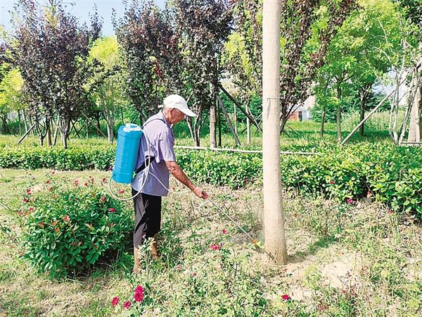 近日,市园林绿化中心工作人员在对绿植喷洒药物。连日来,市园林绿化中心组织专业团队,对中心城区主要路段的绿化带进行了仔细巡查,通过修剪枯枝病叶、人工捕捉害虫、精准喷洒与注射药物及灌根改良土壤等方式,保障苗木健康生长。 记者 杜营营 摄