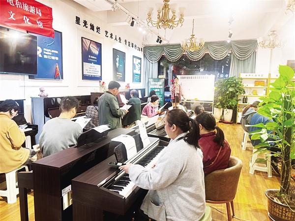 近日,“艺周到”市民夜校第二期钢琴班内灯火通明,学员们端坐于钢琴前,神情专注。在教员耐心细致的指导下,学员们指尖轻触琴键,优美的旋律如河水般缓缓流淌,为城市的夜晚增添了一抹悠扬的文化音符。记者 杜营营 摄