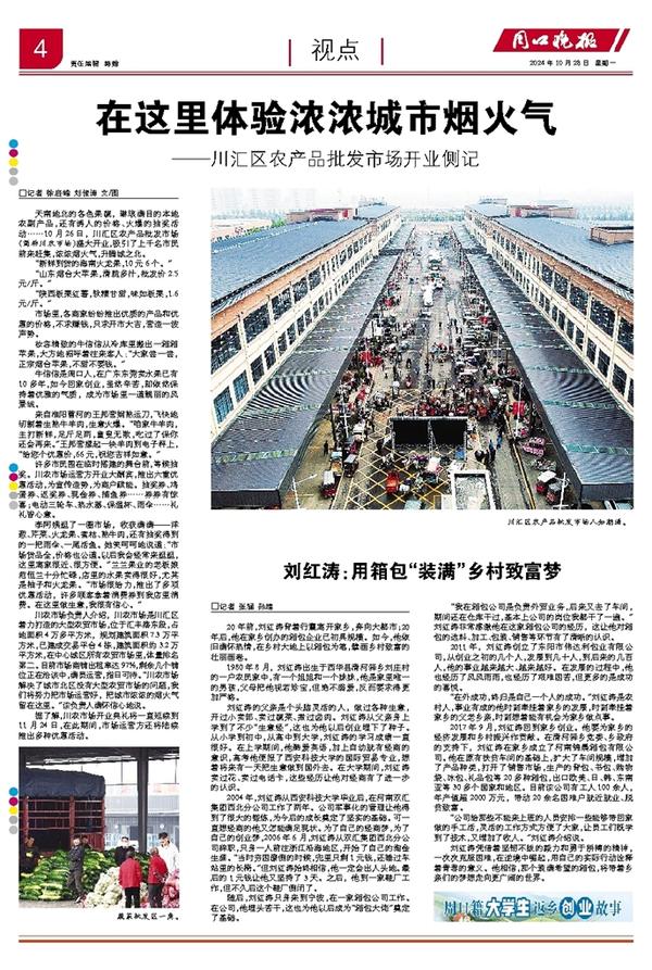 天南地北的各色果蔬,琳琅满目的本地农副产品,还有诱人的价格、火爆的抽奖活动……10月26日,川汇区农产品批发市场(简称川农市场)盛大开业,吸引了上千名市民前来赶集,浓浓烟火气,升腾城之北。