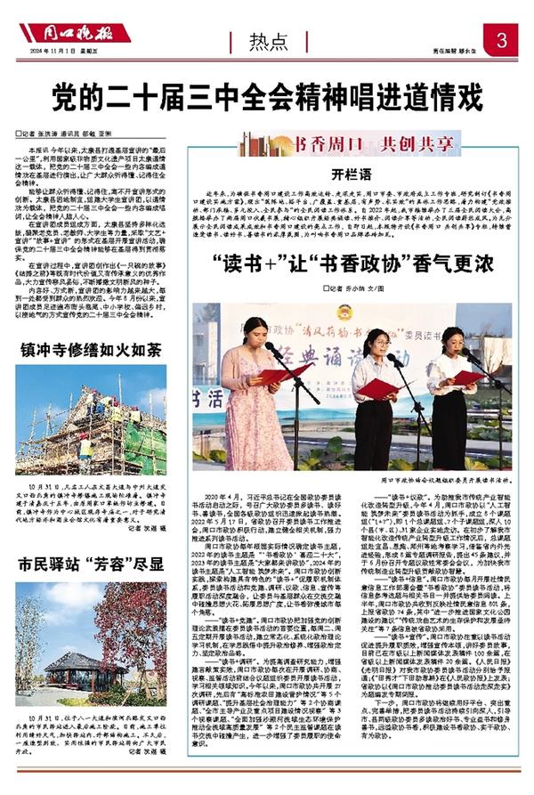 能够让群众听得懂、记得住,离不开宣讲形式的创新。太康县因地制宜,组建大学生宣讲团,以道情戏为载体,把党的二十届三中全会一些内容编成唱词,让全会精神入脑入心。