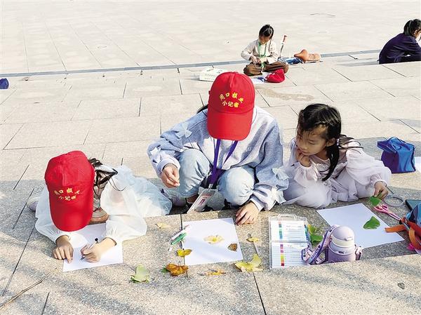 本报讯 11月3日,60余名周口报业小记者来到周口临港开发区人民广场,参加拼贴树叶画活动,迎接记者节的到来。