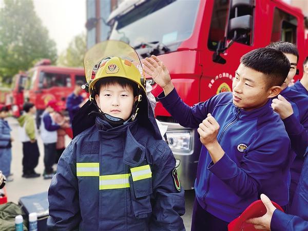 活动伊始,在讲解员的带领下,小记者逐一参观各种消防车辆及随车装备。讲解员通过互动问答的方式,巧妙地将消防知识与各类消防器材的介绍融入问答之中,现场氛围轻松愉悦。部分小记者还在消防员的协助下穿上了消防服、戴上了消防头盔,体验了一次当“小小消防员”的快乐。