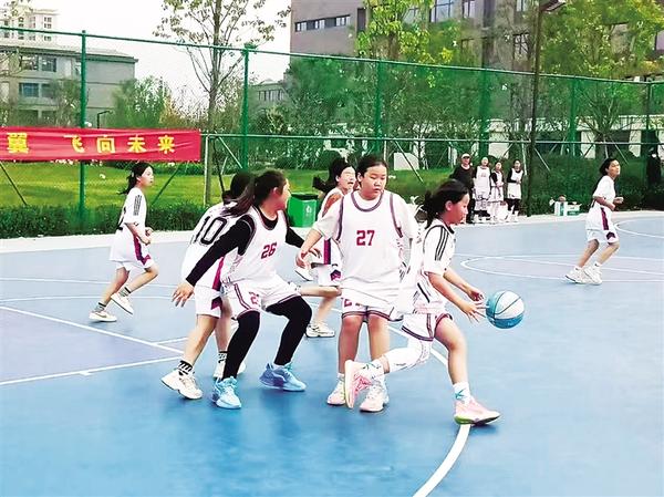 比赛中,同学们精神饱满、斗志昂扬,防守、突破、传球、投篮,一招一式有模有样,加油声、欢呼声此起彼伏,赢得了观众的阵阵掌声。