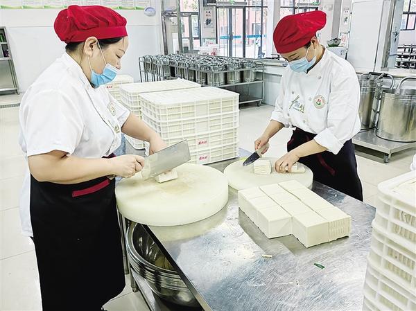 洗菜、切菜、炒菜……临近中午,周口颍河高级中学的食堂飘出阵阵菜香,身着工装、佩戴口罩的食堂工作人员忙得不亦乐乎,他们正精心准备着师生们的“校园餐”。